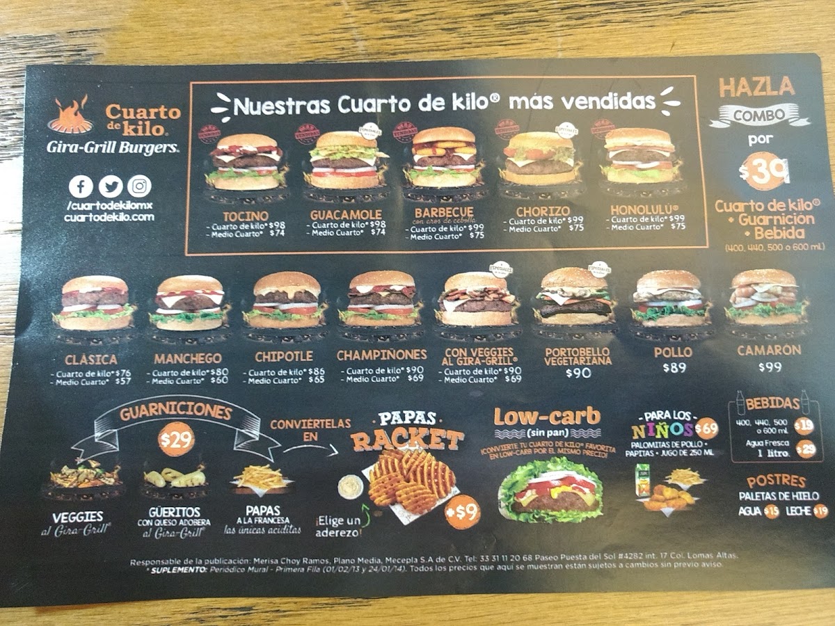 Cuarto De Kilo Menu